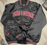 Introducing the Texas Southern Bomber Jacket - a must-have for any fashion-forward man! With its satin exterior and intricate embroidery, this jacket exudes style and sophistication. Plus, the quilted padding will keep you warm and comfortable all day long. Don't miss out on this timeless piece - check out the size chart in the photos to find your perfect fit!