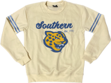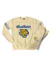 This Southern University Jaguars sweatshirt is perfect for any fan. Crafted from extra soft fabric, it features chenille embroidery and ribbon on the sleeves for a classic look. Show off your school spirit with this vintage-style crewneck.